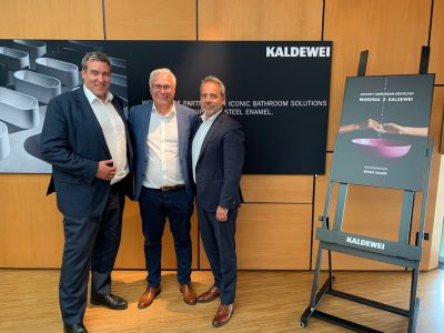 „Wir beabsichtigen, für alle kreislauffähigen Materialien im Gebäude entsprechende Rücknahmevereinbarungen mit den Lieferanten abzuschließen“, so Vanja Schneider, der sich freut, mit dem Familienunternehmen einen hervorragenden Partner gefunden zu haben. Die Wertschätzung gilt gegenseitig: „Wir sind stolz, bei diesem wegweisenden und nachhaltigen Bauprojekt mitwirken zu können“, sagt Frank Jentsch, Leiter Projektmanagement Deutschland bei Kaldewei.