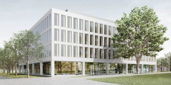 Der monolithische Baukörper zeigt sich nach außen mit einer klar gegliederten Fassade aus hellem Sichtbeton und gleichmäßigen Fensteröffnungen in schlichter Eleganz – eigenständig und dennoch respektvoll gegenüber dem denkmalgeschützten Bestand. Im Erdgeschoss sind zwei Gerichtssäle und eine neue Kantine, in den Obergeschossen Büros für sieben Senate des Gerichts eingeplant. Insgesamt entstehen hier rund 130 Arbeitsplätze, die den Raumbedarf auf dem Gelände des BGH decken sollen. Für Bürgerinnen und Bürger wird eine Teilnahme an Gerichtsverhandlungen auch im neu errichteten Gebäude nach Anmeldung möglich sein.