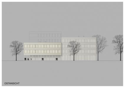 Der prämierte Plan für das neue Gymnasium sieht drei unterschiedlich hohe, direkt aneinander gebaute Gebäudeteile vor, die Kompaktheit und Offenheit vereinen. So finden die zwei Schulformen in einer gemeinsamen, architektonisch differenzierten Struktur Ausdruck. Die Mehrteiligkeit des Baukörpers, dessen Fassade aus heimischen Hölzern gestaltet wird, spiegelt ebenso das pädagogische Konzept des Zusammenwachsens wider und ist nach außen klar ablesbar. Die offene, flexible Architektur unterstützt den Austausch, die Vielfalt und das gemeinsame Lernen und Lehren.