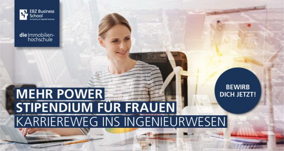 Die „Frauen in der Immobilienwirtschaft e. V.“ unterstützen die künftigen Stipendiatinnen der EBZ Business School dabei ehrenamtlich mit ihrem Expertinnen-Netzwerk. Als größte deutsche immobilienwirtschaftliche Fakultät kooperiert die EBZ Business School seit Jahren mit den Immofrauen, unter anderem im Rahmen eines überaus erfolgreichen Frauen-Mentoring-Programms. „Wir begrüßen die Initiative der EBZ Business School, zwei Stipendien für den neuen Studiengang auszuloben, ausdrücklich“, sagt Katrin Williams, die Vorstandsvorsitzende des Vereins. „Die Stipendien sind eine große Chance und Unterstützung für junge Frauen, die den Schritt in eine Karriere als Wirtschaftsingenieurin in der Immobilienwirtschaft wagen möchten.“