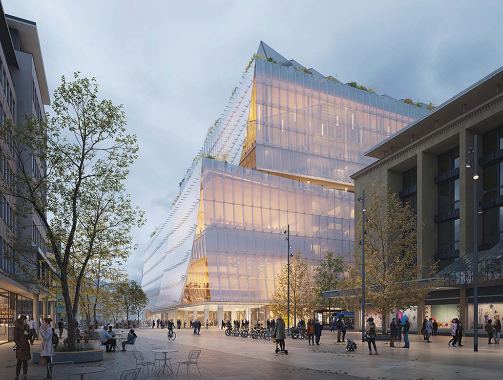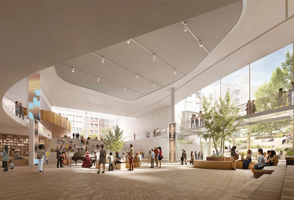 Der Entwurf wird insgesamt als mutiger, konsequenter Beitrag ausgezeichnet, dessen Qualität in der städtebaulichen Konfiguration des großen Bauvolumens im Spannungsfeld zwischen Solitär und Blockrand liegt. Gewürdigt werden die funktionale Organisation und gestalterische Kraft mit starker Wiedererkennbarkeit, auch wenn ein noch stärkerer Bezug zur Kulturnutzung des Hauses gewünscht würde.