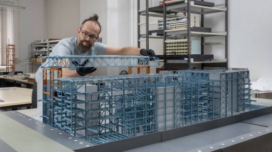 Freiberg (pm) – Mit diesem Fund rechnete niemand, als im Jahr 2021 das Gemeinschaftsprojekt „Entwicklung des Stahlleichtbaus in der DDR“ der TU Bergakademie Freiberg und der TU Braunschweig startete. Das Team wollte die Geschichte des VEB Metallleichtbaukombinat (MLK) erforschen. Der VEB MLK war das größte Baukombinat der DDR im Bereich Stahlhochbau. Zwischen zahlreichen Modellen von Schulen, Lagerhallen und landwirtschaftlichen Gebäuden befand sich auch ein Modell ohne Bezeichnung. Es handelte sich dabei um eines der bedeutendsten Hochbauprojekte der DDR, der Palast der Republik in Berlin.