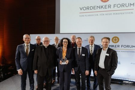 Das Vordenker Forum ehrt herausragende Köpfe, die maßgeblich an der Zukunft unserer Gesellschaft mitwirken, mit dem „Vordenker Preis“. Ziel der Preisverleihung durch eine unabhängige Jury* ist es, dem gesellschaftlich wichtigen Thema „Mutiges Vordenken“ Aufmerksamkeit und Gewicht zu verleihen. Vor Prof. Dr.-Ing. Lamia Messari-Becker wurden der KI-Pionier Prof. Dr. Sebastian Thrun (2022), der Politologe Prof. Bassam Tibi (2019), der Rat der Wirtschaftsweisen (2018), Dr. h.c. Frank-Jürgen Weise (2016), Dr. Nicola Leibinger-Kammüller (2015), Jean-Claude Juncker (2014), Prof. Paul Kirchhof (2011), Bischof Dr. Wolfgang Huber (2009) und Prof. Norbert Walter (2008) als Vordenker ausgezeichnet.