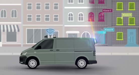 Im Projekt LaSanGe, das vom Land Baden-Württemberg im Rahmen des Strategiedialogs »Bezahlbares Wohnen und innovatives Bauen« gefördert wird, entwickelt Fraunhofer IPM ein optisches Sensorsystem, das neben geometrischen Gebäudedaten auch quantitative Daten zu den thermischen Eigenschaften von Fassaden und Fenstern liefern soll. Der neue LiDAR-Sensor wird Teil eines Mobile-Mapping-Systems, das Gebäude von einem Fahrzeug aus erfasst – großflächig und schnell. Anhand der Daten können Kommunen oder große Bauträger schneller als bisher abschätzen, wo energetische Sanierungen besonders dringend sind und wie aufwändig die Sanierung sein wird. »Wir brauchen mehr Tempo bei der Gebäudesanierung«, meint Prof. Dr. Alexander Reiterer, Leiter der Abteilung Objekt- und Formerfassung am Fraunhofer IPM. »Unser mobiles Messsystem wird erstmals eine wirklich umfassende Datenbasis für energetische Sanierungen liefern. Damit wird sich die Planungsphase bei der Gebäudesanierung deutlich verkürzen.«