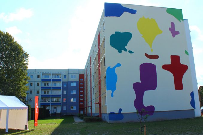 Durch den notwendigen Rückbau von 40 Wohnungen im Zuge des Stadtumbaus wurde das Quartier „Am Stadion“ im Bereich der Toftlundstraße, Mariefredstraße und Ascheberger Straße deutlich verändert. Von der REWOGE erforderte das aufgrund eines in Folge eines Abrisses nun freigelegten Häusergiebels die Entwicklung eines Gestaltungs- und Sanierungskonzeptes. „Der Rückbau war ein spürbarer Einschnitt in den bestehenden Kiez. Wir haben daher bei den folgenden Schritten auf eine intensive Beteiligung der Anwohner gesetzt“, so REWOGE-Geschäftsführer Stephan Greiner-Petter. In der Folge entwickelte die REWOGE einen Malwettbewerb für die Kinder der Nachbarschaft zur Sammlung von Gestaltungsideen für die neuen Fassaden der fünf stehengebliebenen Wohnhäuser. Eng begleitet wurde der Wettbewerb mit dem unternehmenseigenen Mietermagazin „Stadtleben“: Auf diese Weise konnten nicht nur die Bewohner*innen des Quartiers, sondern alle REWOGE-Mieter*innen an dem Prozess teilhaben.