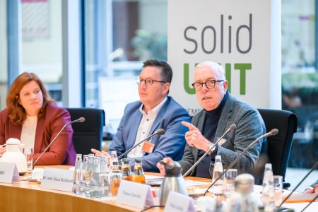 Die Dringlichkeit des Themas stellte Dr. Klaus Reinhardt, Präsident der Bundesärztekammer, in seiner Keynote „Menschenschutz bei zukünftigen Hitzeperioden aus medizinischer Perspektive“ zu Beginn der solid UNIT-Klimabeiratssitzung eindrücklich dar. „Effektiver Hitzeschutz gelingt nur gemeinsam. Oberstes Ziel muss es sein, klimabedingte Erkrankungen und Todesfälle zu vermeiden und das Gesundheitssystem vor einer Überlastung zu bewahren“, sagte er. Wir benötigen resiliente Lebensräume, die sowohl die Umwelt als auch die Gesundheit von Menschen schützen. 2024 sind ca. 8.000 Menschen an den Folgen extremer Hitzeperioden gestorben. Diese Zahl hätte u.a. durch klimaresilientere Gebäude deutlich gesenkt werden können.