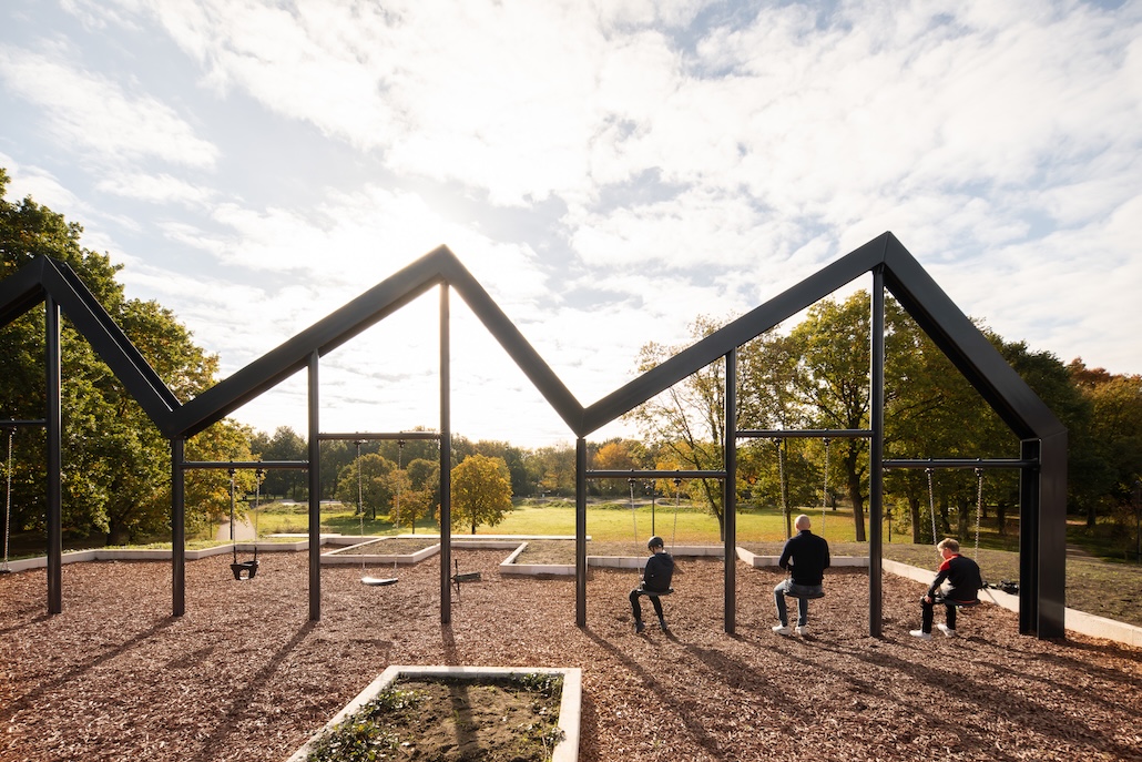 The Hill: Ein vier Meter hoher Hügel aus vor Ort ausgehobenem Bodenmaterial ermöglicht Sonnenbaden im Sommer und Schlittenfahren im Winter. Eine Tribüne auf dem Hügel bietet Ausblicke auf den Platz und den Park. Bekrönt wird der Hügel von einer beeindruckenden, 17 Meter langen und 5 Meter hohen industriellen Stahlschaukel, inspiriert von einem bekannten lokalen Gebäude – als Referenz an Oss’ reiches industrielles Erbe.