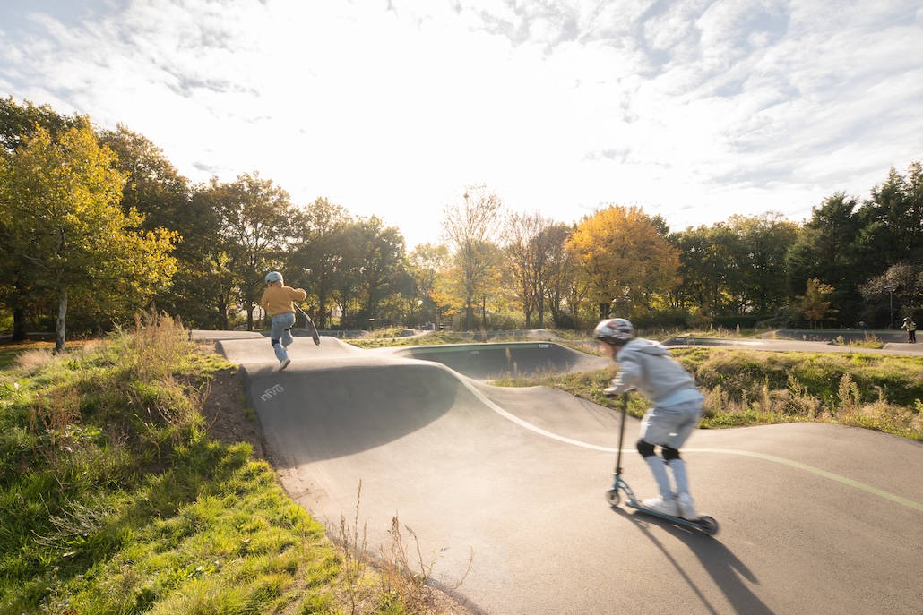 Oss, Niederlande (abki) – Der Sibeliuspark in Oss wurde von einer vernachlässigten, wenig genutzten Grünfläche in einen einladenden, lebendigen und vielfältigen 25 Hektar großen Stadtpark verwandelt. Entworfen von KCAP als Landschaftsarchitekt, bietet das Projekt eine naturinklusive, klimaadaptive Umgebung, die über 400 neu gepflanzte Bäume, ein vielseitiges Angebot für alle Altersgruppen sowie integrierte Wohnbebauung miteinander verbindet. Der Urban Ox Park mit Skatepark, Pumptrack und Calisthenics-Anlage dient nun als pulsierendes Herzstück des erneuerten Sibeliusparks.