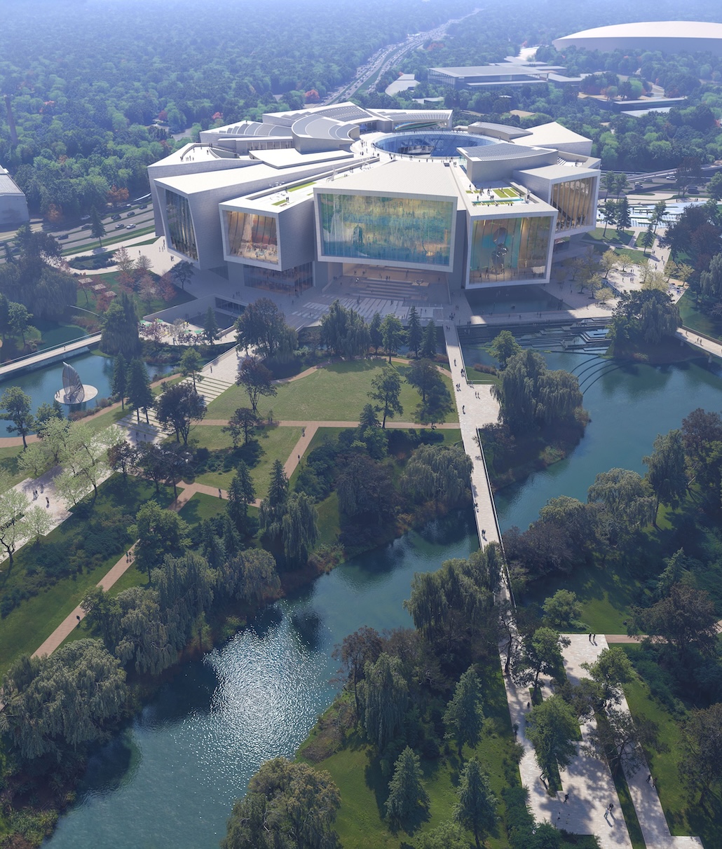 Über einer U-Bahn-Linie positioniert, fungiert das Museum zugleich als Verkehrsknotenpunkt und verbindet Besucherinnen und Besucher direkt mit der Welt der Kunst. Seine skulpturale Baumasse strahlt von einem zentralen Kern aus, während linsenartige, gewellte Fassaden die Grenzen zwischen Gebäude und Landschaft auflösen und einen dynamischen öffentlichen Raum schaffen, der die lokale Gemeinschaft einbindet. Der Entwurf vereint programmatische Komplexität mit vielfältigen Nutzererfahrungen und gewährleistet dabei Flexibilität und Inklusivität.