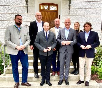 Klimabeirat Michael Kießling MdB und Thomas Zawalski waren gemeinsam mit weiteren Vertreter:innen aus Politik und der Baubranche bei LEIPFINGER-BADER zu Besuch, um sich mit dem geschäftsführenden Gesellschafter Thomas Bader über die Zukunft des nachhaltigen Bauens und den Beitrag innovativer mineralischer Baustoffe zum Klimaschutz auszutauschen.