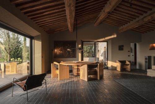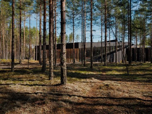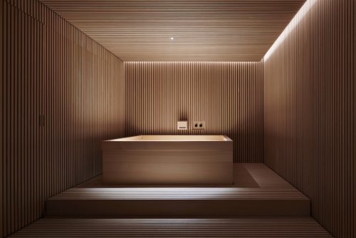 Ein weiterer Trend ist außerhalb der Stadt in der Hotelarchitektur im ländlichen Raum zu erkennen. Um den wachsenden Belastungen der Großstadtbewohner*innen — durch Verkehr, Lärm, Dichte und Alltagsstress – etwas entgegenzusetzen, entstehen vielerorts Hotels und Wellnessoasen in der Natur. Die ausgezeichneten Projekte dieser Kategorie eint das Bestreben danach, den Gästen den Wunsch nach Naturerlebnissen zu erfüllen und einen echten Perspektivwechsel zu erzeugen. Die Gebäude überzeugen durch ihre Materialauswahl und Formensprache und setzen Orte in Szene, die für Naturerfahrungen samt Ruhe und Reizreduktion geprägt sind. Ein Beispiel ist das neue Spa „ATMOSPHERE by Krallerhof“ im österreichischen Leogang, gestaltet von Hadi Teherani Architects. Das Ziel des Architekturbüros war es, ein puristisches und reduziertes Gebäude zu schaffen, das sich harmonisch in die Landschaft einfügt. Sein Dach greift die Formen der Hügel und Berge auf, welche die Umgebung des Krallerhofs prägen. Die neue Spa-Welt schließt sich an das Hotel an und präsentiert sich mit einem spiralförmig angelegten Atrium und einem alpinen Zen-Garten. Eine große Glasfassade, die den Blick auf den Natursee freigibt, ist ein besonderes Highlight. Sie kann zur Gänze in den Boden versenkt werden, so dass das Innere des Hauses mit der Natur zu einer Einheit verschmilzt.