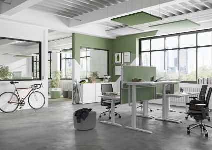 Die Akustik-Elemente von fm Büromöbel bieten auch ganz neue Möglichkeiten für die Struktur von Büroräumen. Auf Wunsch verwandeln sich stilbildende Textilwände, Deckensegel oder frei aufgestellte Sichtschutze in dekorative Design-Elemente und elegante Raumteiler. Gleichzeitig dämmen sie mit integrierten Schallabsorbern den Lärmpegel am Arbeitsplatz. Aber fm Büromöbel geht noch einen Schritt weiter: So lässt sich zum Beispiel das „Sichtschutzsystem 41“ ideal mit passenden Schrankprogrammen kombinieren. Ganz nach Bedarf können verschiedene Elemente individuell konfiguriert werden und schaffen mit wenigen Handgriffen neue Arbeitsbereiche bis hin zu diskreten Ruhezonen. Ausgestattet mit Glaseinsätzen sowie smartem Zubehör und der praktischen Orgaschiene entsteht ein voll ausgestattetes „Büro im Büro“. Darüber hinaus begeistern die Sichtschutzelemente auf Rollen mit smarter Beweglichkeit. Wer noch mehr Stauraum benötigt, entscheidet sich für die flexiblen fm-Rollladenschränke mit Akustikrückwänden. Sie begeistern als Raumteiler, Stauraum sowie Meetingpoint in einem. Außerdem sind sie schallhemmend und sehr attraktiv. So entsteht mit dem idealen Mix aus Möbeln, Dekoren und Akustikelementen in jedem Office eine angenehme, ruhige Atmosphäre, in der die Arbeit Spaß macht.