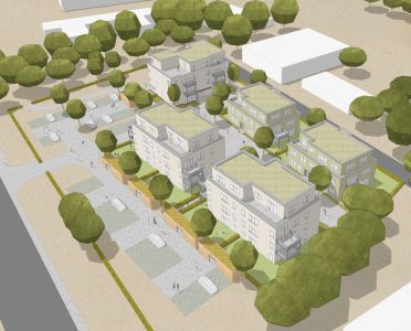 Doch nicht nur die technischen Fakten machen das Projekt berichtenswert, denn eines der Gebäude entsteht in Kooperation mit dem inklusiven Baugruppenprojekt „WiO – Wohnen im Ort e.V“. Die Elterninitiative hat es sich zum Ziel gesetzt, jungen Menschen mit Behinderung einen möglichst eigenständigen Alltag zu bieten. Das geplante Mehrfamilienhaus wird mit einem auf die Belange der 18- bis 30-jährigen Bewohner*innen abgestimmten Kommunikationssystem ausgestattet. So ist im Erdgeschoss des Gebäudes neben einem Gemeinschaftsraum, auch ein Serviceraum für den betreuenden Sozialpartner und eine Gemeinschaftsküche vorgesehen. Auf den restlichen Etagen werden ein weiterer kleinerer Gemeinschaftsraum, Einzelappartements und eine Wohngemeinschaft eingerichtet.