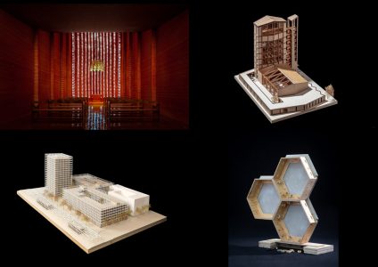 Die ausgezeichneten Entwürfe: „Stein der Ruhe“ (oben links), „St. Mauritius weiterbauen“ (oben rechts), „Belvedere Berlin“ (unten links) sowie „Bauteilsystem 46,5“ (unten rechts). Bernhard Friese, Angelika Walz (links unten) (c) Bernhard Friese, Angelika Walz (links unten)