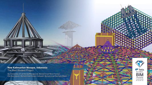 Die Moschee soll auf einem Hektar Fläche etwa 16.000 Gläubige beherbergen. Elemente der ursprünglichen, lokalen Kultur von Kalimantan, der Banjar- und Dayak-Stämme, finden sich im Entwurf wieder. Die Moschee, bestehend aus Stahl und Beton, wurde mit Trimbles SketchUp und Tekla Structures entworfen und modelliert. Für das bautechnische 3D-Rendering verwendeten die Studenten auch das in Tekla Structures integrierte Visualisierungswerkzeug.