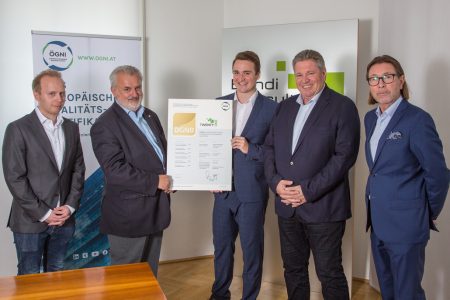 Wien (pm) – Das neue Gewerbequartier TwentyOne von Immobilienentwickler Anton Bondi de Antoni, Bondi Consult, wurde von ÖGNI als erstes Projekt mit dem Zertifikat GOLD für „Business Quartiere Version 2020“ ausgezeichnet. Die Urkunde wurde letzten Donnerstag überreicht.