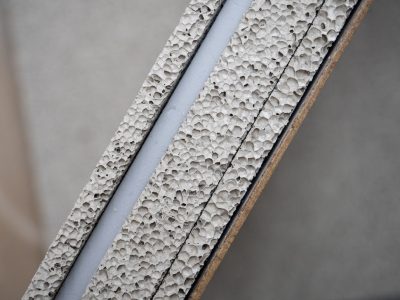 Die hohe Schallabsorption trotz geringer Materialdicke beruht laut Empa-Forscher Bart Van Damme auf einer patentierten Konstruktion: «Die variierende Porenstruktur der mineralischen Schäume zwingt die Luftpartikel auf einen längeren Weg, um ins Material und wieder hinauszugelangen. Trotz geringer Dicke entsteht so für die Schallwellen der Eindruck eines viel dickeren Absorbers.» Entscheidend dafür sind möglichst grosse Poren mit möglichst dünnen Porenwänden. Für die neuartigen Schallabsorber verwenden die Forschenden der Empa-Abteilung Akustik/Lärmminderung mehrere poröse Schichten. Dabei variieren sie nicht nur die Dicke der einzelnen Schichten und die Grösse der Poren, sondern versehen sie zusätzlich noch mit kleinsten Löchern. Während sich die Schäume aus Gips oder Zement mit etablierten Verfahren und über 90 Prozent Porenanteil herstellen lassen, erfolgt die Perforierung derzeit noch von Hand.