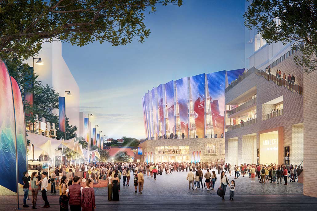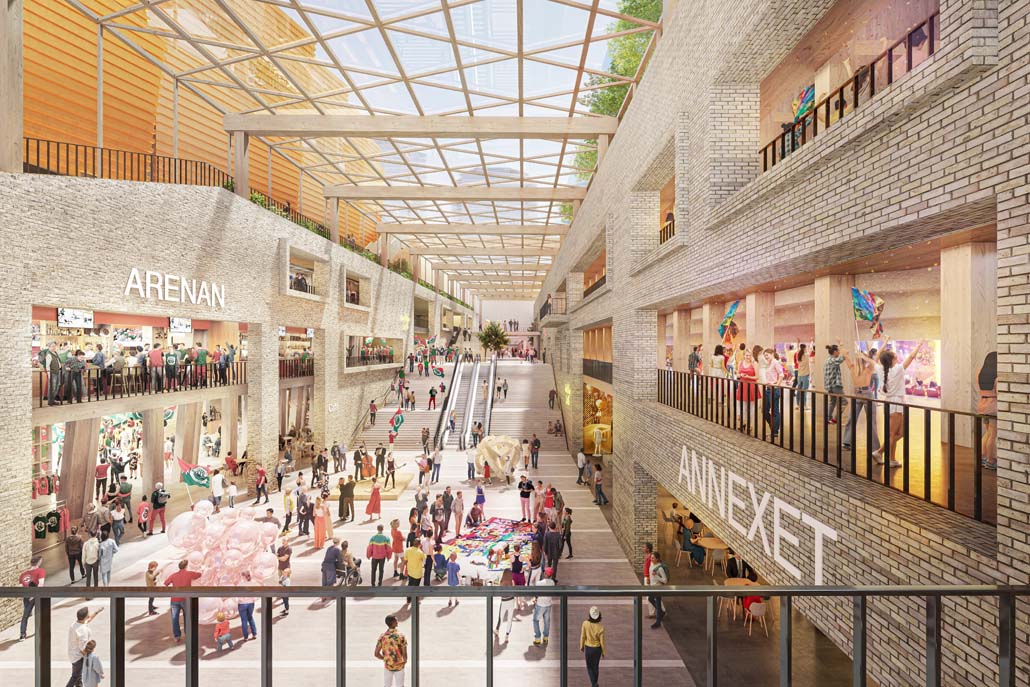 Die neuen Arenen sollen sowohl größere Veranstaltungen als auch mehr Zuschauer:innen aufnehmen können und gleichzeitig den grünen Charakter des Viertels stärken. Die Erdgeschosse laden mit offenen und inklusiven Räumen zum Verweilen ein, statt nur zum Durchqueren. Die Dächer des neuen Quartiers sind als miteinander verbundener Park auf mehreren Ebenen geplant – mit Bereichen für Abenteuerspielplätze, Freiflächen für nahegelegene Schulen oder als eigenständiges Freizeitangebot für Besucher:innen und Einheimische gleichermaßen.