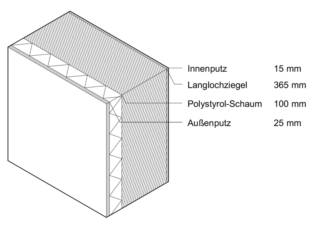Auf Basis eines digitalen Architekturmodells sowie des ortstypischen Wetterprofils wurde die Temperaturentwicklung im Innenraum des Hauses simuliert. In den Berechnungen wurde jede Wohnung als eigene thermische Zone betrachtet und sowohl externe, z.B. Solarenergie durch Fensterflächen, als auch interne, bspw. Elektroenergie durch Herd, Laptop oder Körperwärme der Bewohner*innen, Wärmeeinträge berücksichtigt. Dabei zeigte sich, dass die Temperaturen einer im ersten Obergeschoss befindlichen Beispielwohnung mit drei Außenwänden ohne Heizung auf ein Minimum von durchschnittlich circa 7 bis 8°C sinken würden.