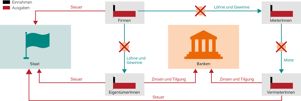Wohnungsmarktkreislauf in der Krise ohne staatliche Unterstützung