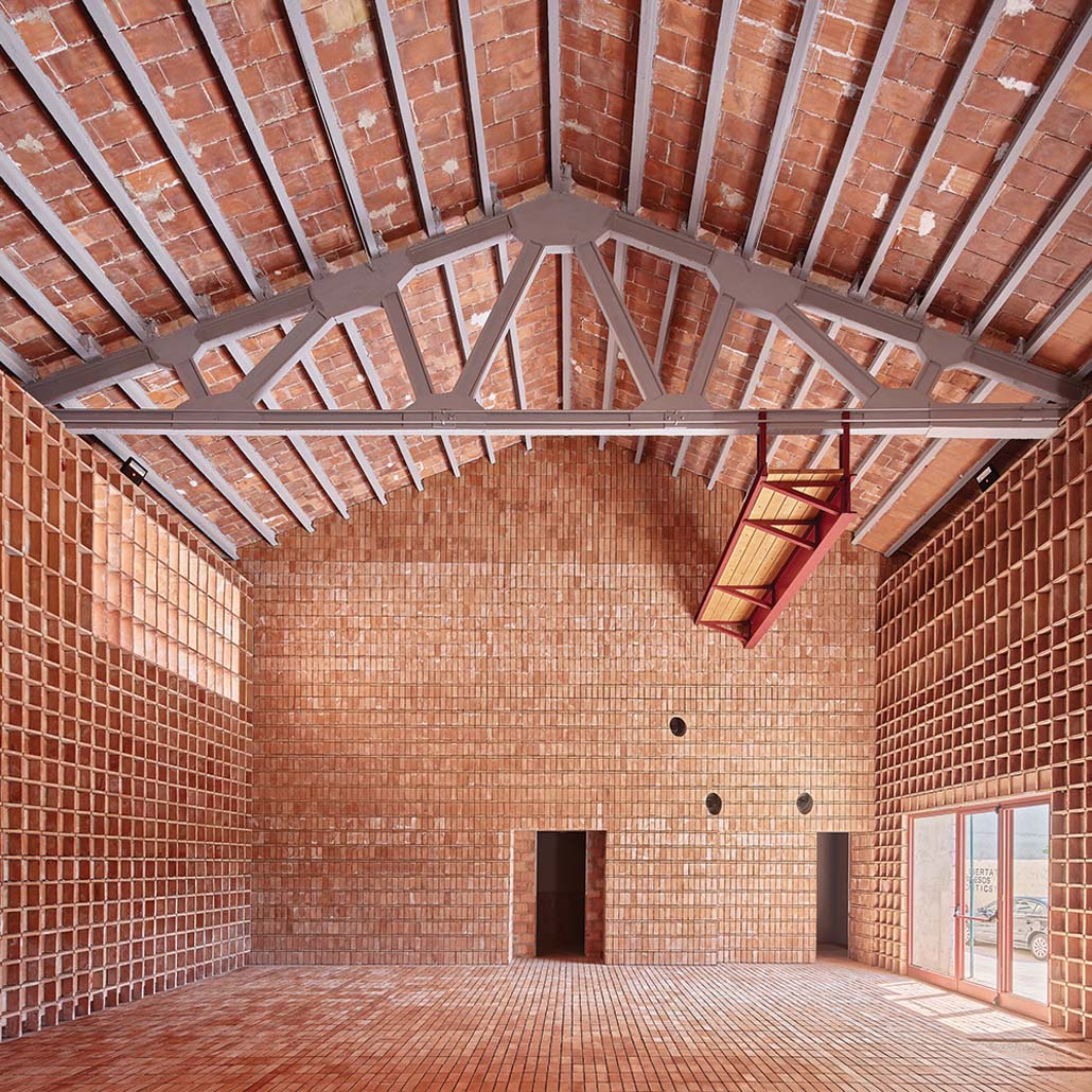 Das als „Best of Best“ prämierte Projekt Kulturraum Flix in Spanien demonstriert unter der Handschrift von Camps Felip Arquitecturia die Relevanz des Materials in aktueller Architekturpraxis. In der katalanischen Gemeinde Flix verwandelte das Büro ein ehemaliges Lagerhaus einer landwirtschaftlichen Genossenschaft in ein Kulturzentrum – mit dem Ziegel als verbindendem Element zwischen Vergangenheit und Gegenwart. Die historische Fassade bleibt erhalten, während das Material im Inneren neu interpretiert wird: als Bodenbelag, Wandverkleidung und selbsttragendes Element. Ein doppelschaliges Wandsystem integriert die technische Infrastruktur und verbessert die Energiebilanz, ohne die Materiallogik zu unterbrechen. Die Jury der ICONIC AWARDS 2025 hebt hervor, wie es Camps Felip Arquitecturia gelungen sei, „historische Referenzen zu erhalten, den Bau aber zugleich auf eine diverse Nutzung auf der Höhe der Zeit hin auszulegen“. Entscheidend sei die „Verwendung durchweg einfachster Materialien“, die eine dichte Atmosphäre erzeugt und das Zusammenspiel von Alt und Neu zu einer zeitgemäßen Einheit verdichtet.