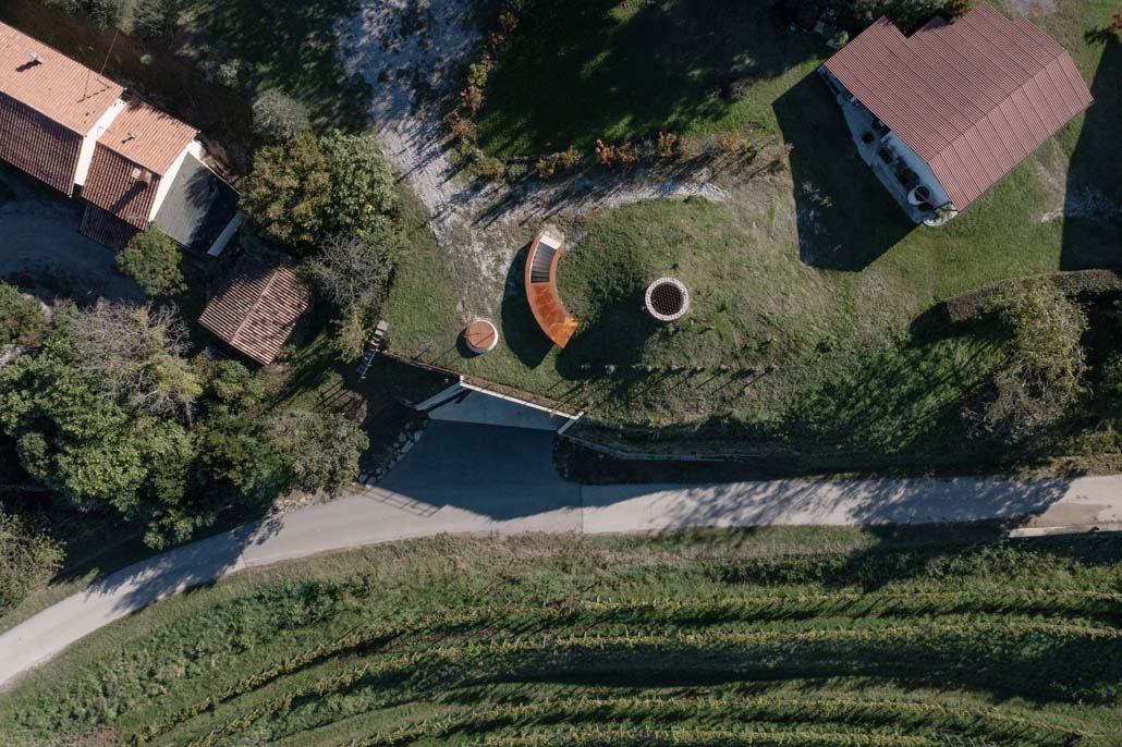 Besonders eindrücklich zeigt dies der Weinkeller Trifolium in Goriška Brda, Slowenien, entworfen vom slowenischen Büro Lendarchitektur. Das Gebäude scheint aus dem Hügel herauszuwachsen, als sei es immer Teil der Weinberge gewesen. Lendarchitektur nutzte das brüchige Flysch-Gestein des Geländes nicht als Hindernis, sondern als prägendes Element. Statt einer klassischen Baugrube setzten die Architekt*innen auf ein gewölbtes Pfahlsystem, das die Topografie respektiert und den Eingriff in die Natur minimal hält. Die kleeblattförmige Grundrissfigur folgt dem Verlauf des Geländes und gliedert die Funktionen des Weinkellers in eigenständige Kammern. Durch gezielt gesetzte Öffnungen bleibt die Verbindung zur Landschaft erhalten und macht den Produktionsprozess als Teil des Ortes erfahrbar. Die Jury würdigt das Projekt mit den Worten „Die Planenden haben hier eine wirklich außerordentliche Kontextqualität erreicht“ und verleiht die Auszeichnung „Best of Best“.